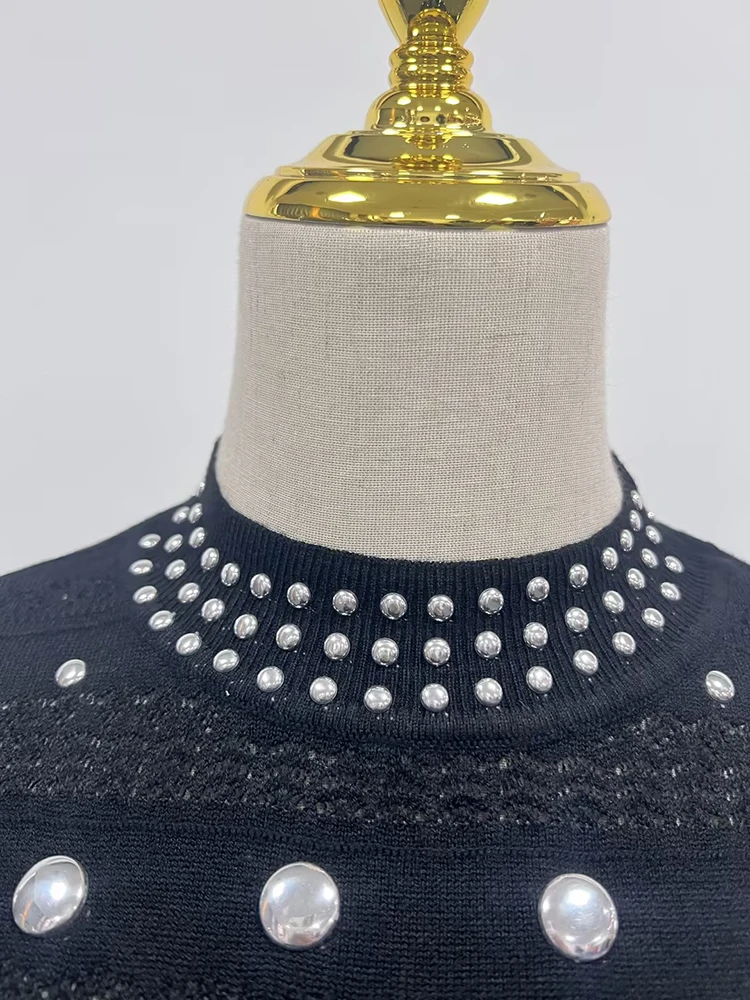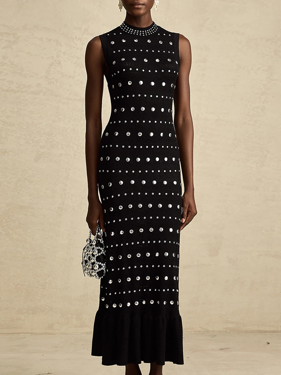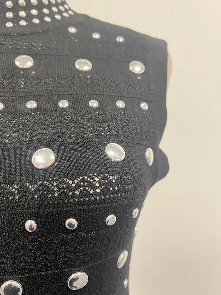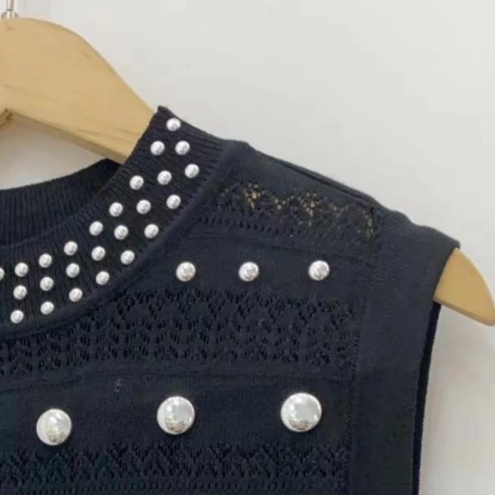 ✔ تصميم بدون أكمام برقبة مستديرة مزينة بالاحجار المعدنيه الصغيرة لإضفاء لمسة أنيقة.