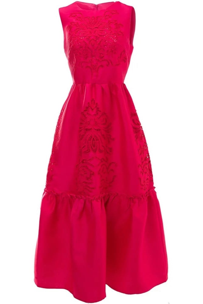 فستان أنيق بتطريز مفرغ بلا أكمام