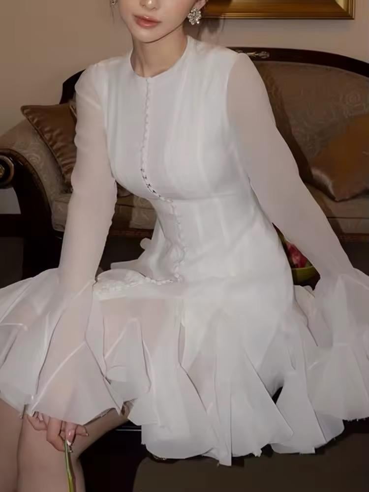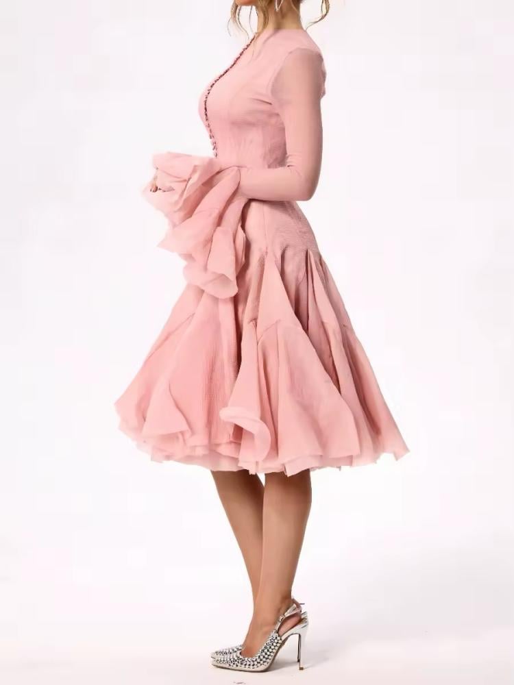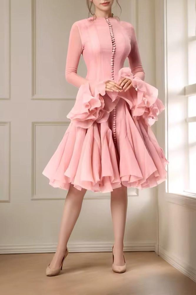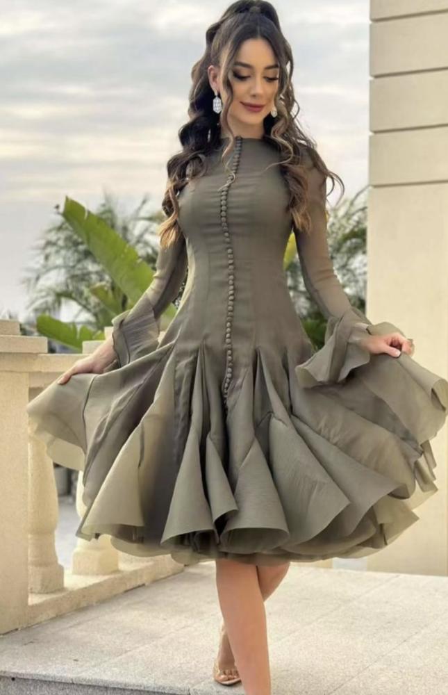 فستان أنيق متوسط الطول موديل رفلز