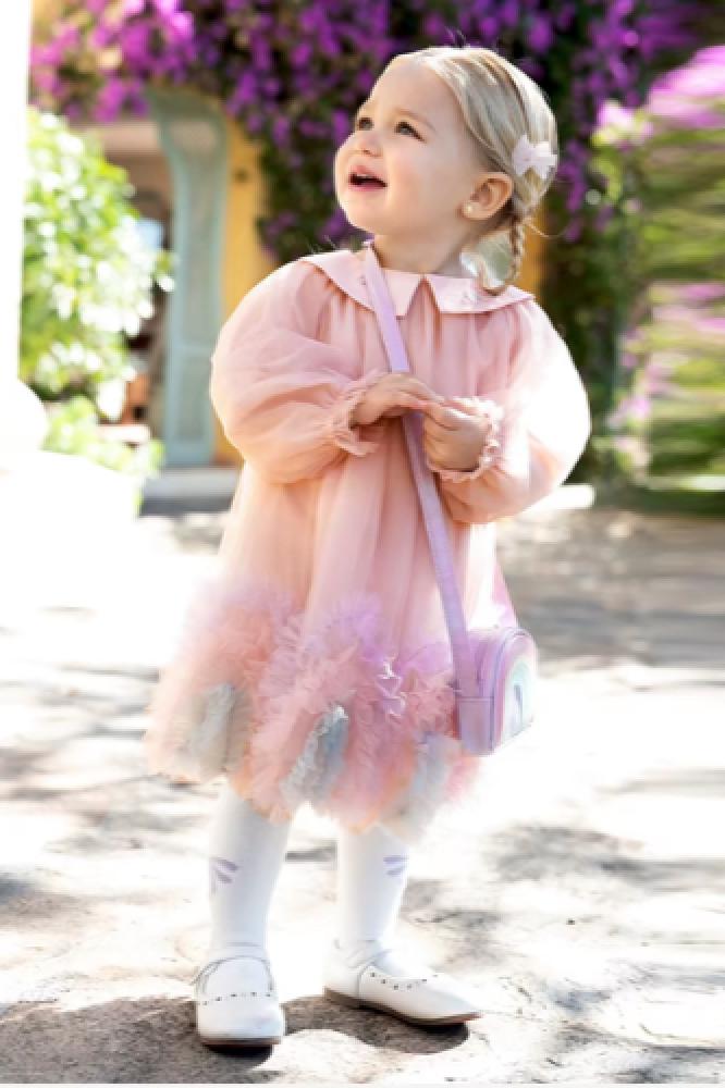 👑 أضيفي لمسة من الفخامة إلى إطلالة طفلتك مع هذا الفستان الأنيق الذي يجمع بين الأنوثة والرقي! 👑