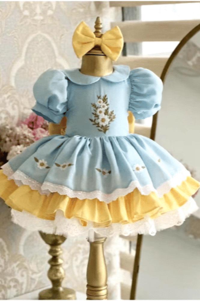فستان الأميرة العتيق بتطريز زهرة الأقحوان للأطفال