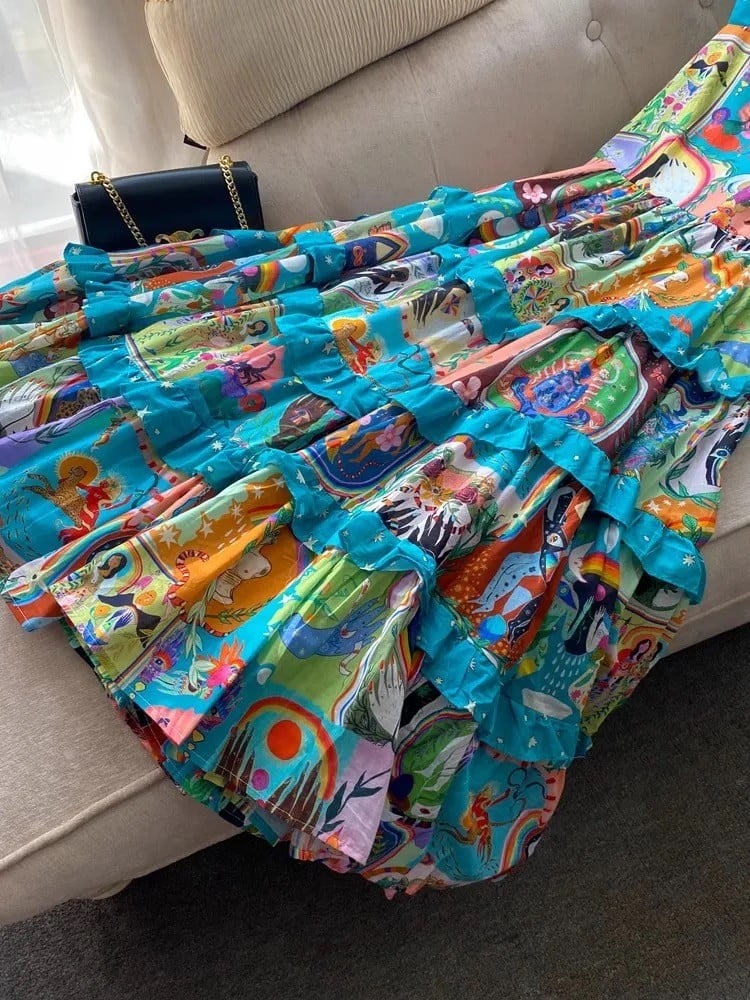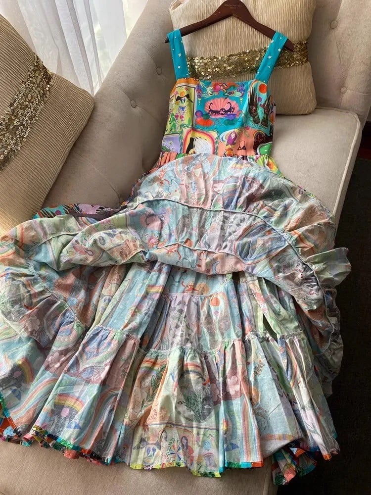 فستان برسومات كرتونية للحفلات بدون بأكمام