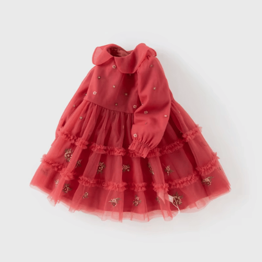 فستان ديف بيلا الأميرة للأطفال | أحمر مطرز بالأزهار