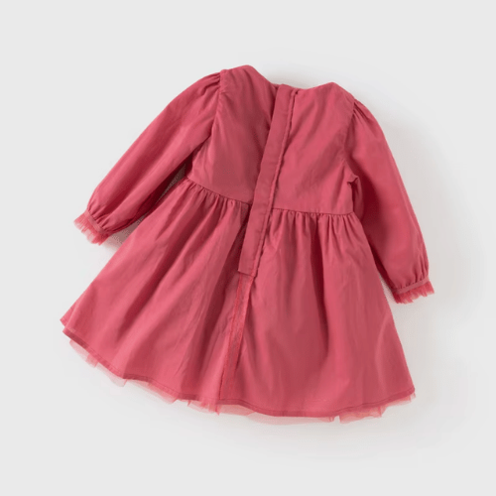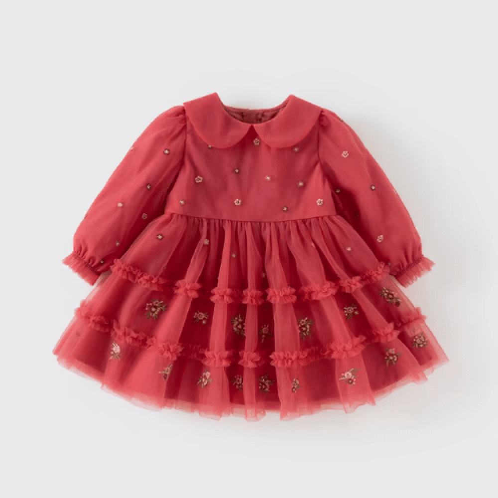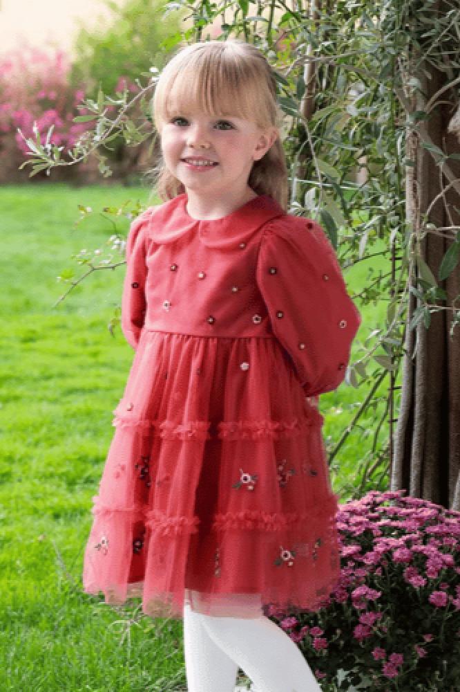 فستان ديف بيلا الأميرة للأطفال - فستان أحمر مطرز بالأزهار لحفلات الربيع 2025