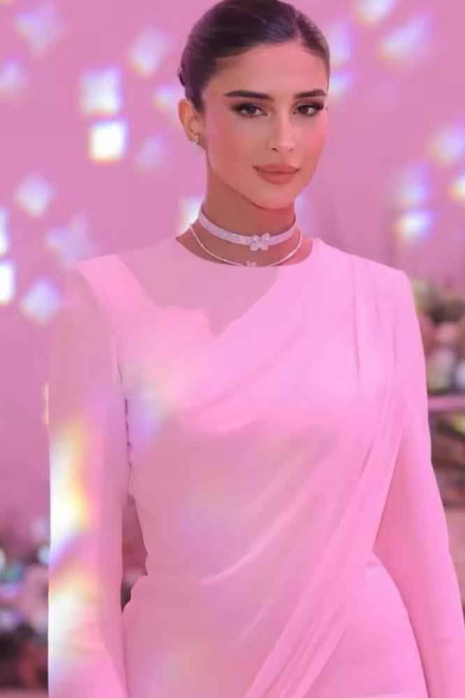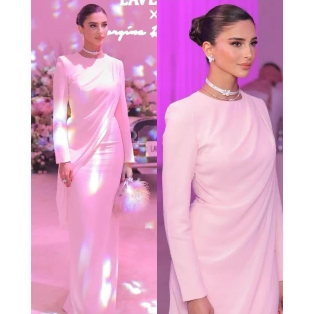 فستان سهرة وردي ناعم بقصة ملكية أنيقة