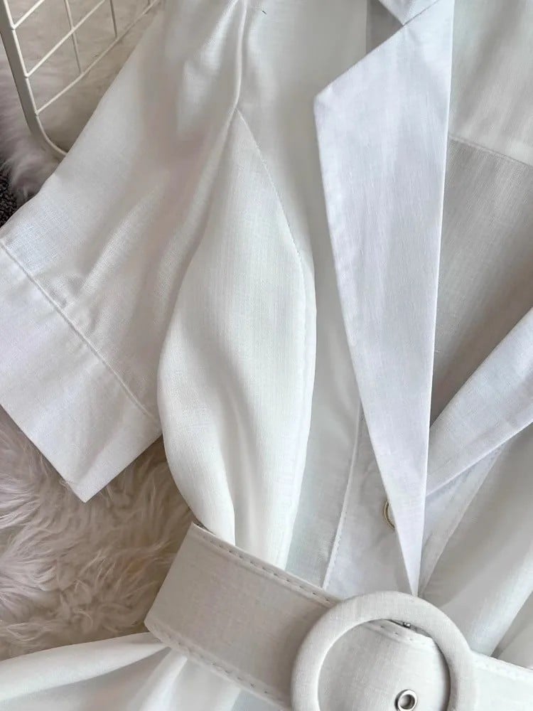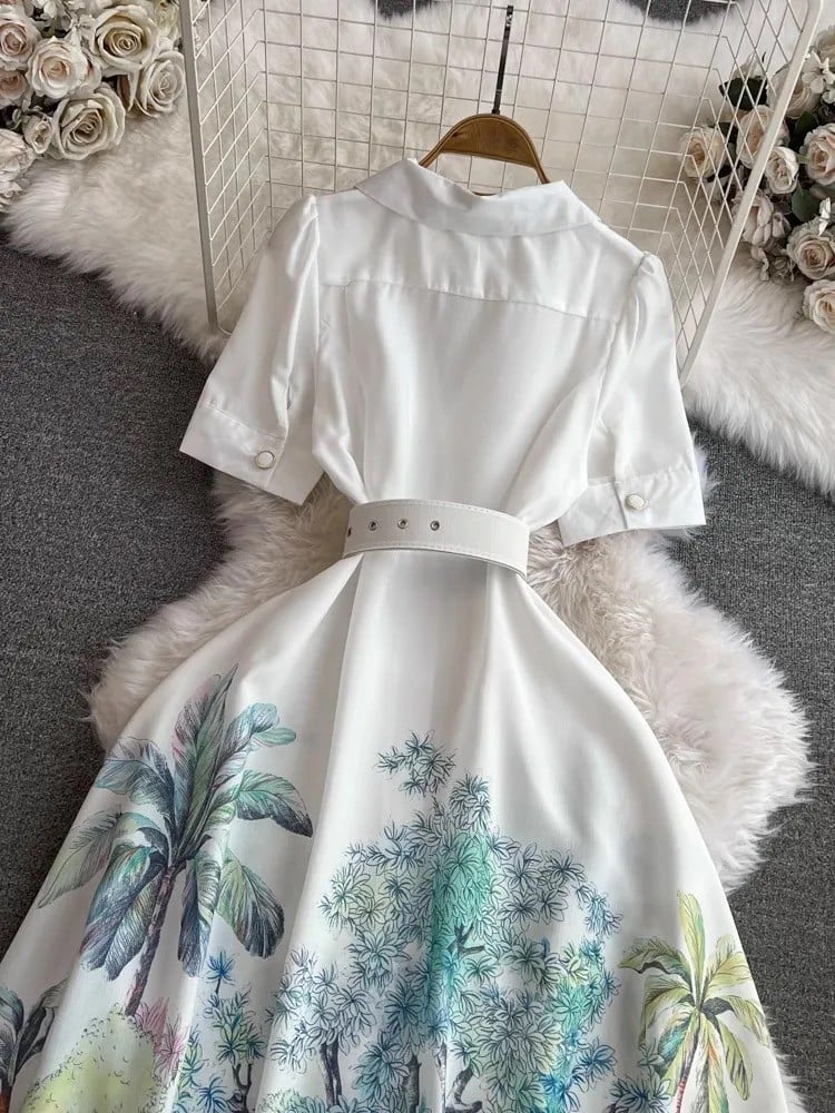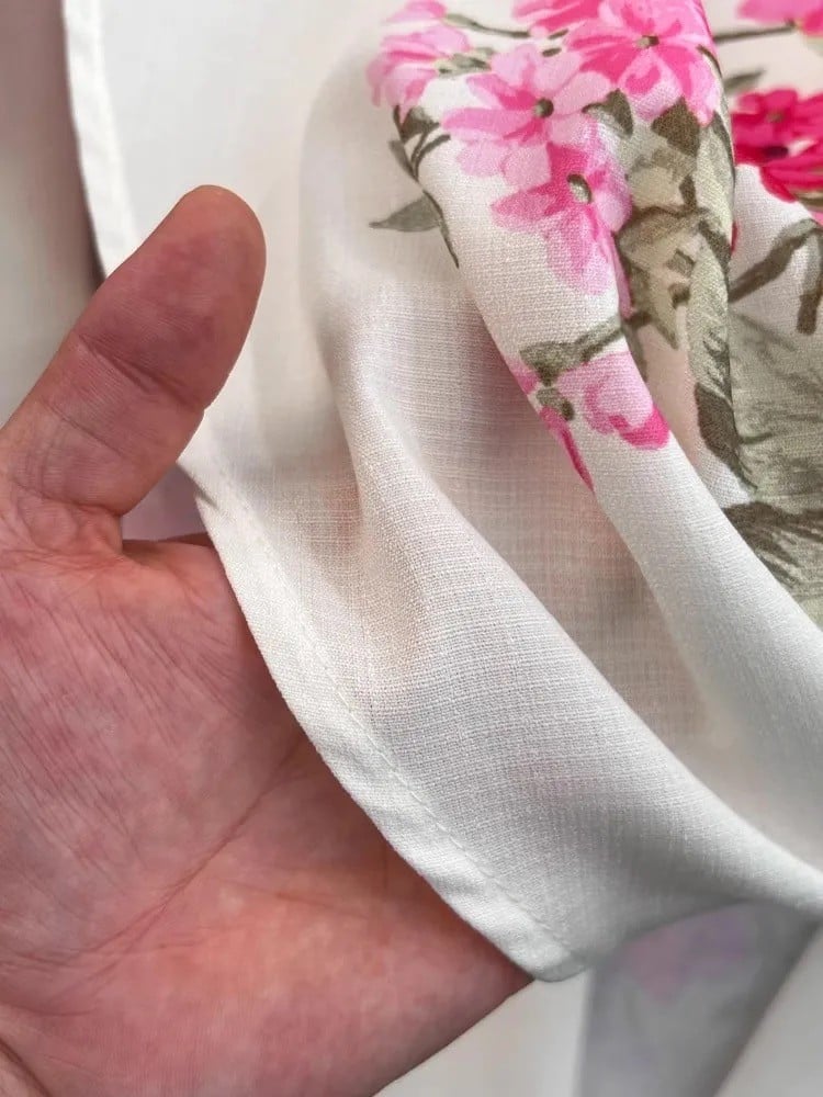 فستان نسائي أنيق من الكتان مشجر بالزهور وبأكمام منفوخة