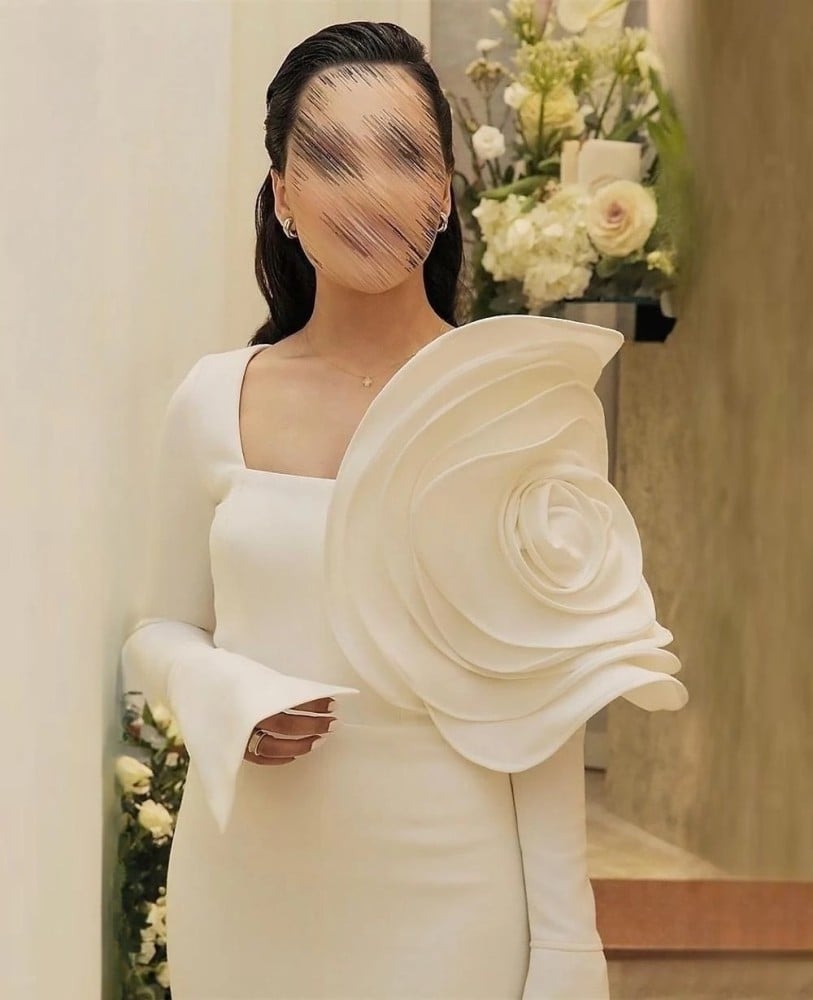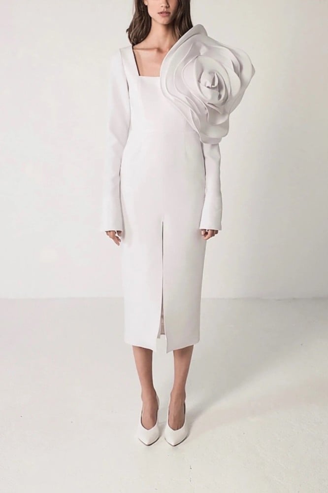 فستان نسائي سهرة مزين بوردة كبيرة 3D