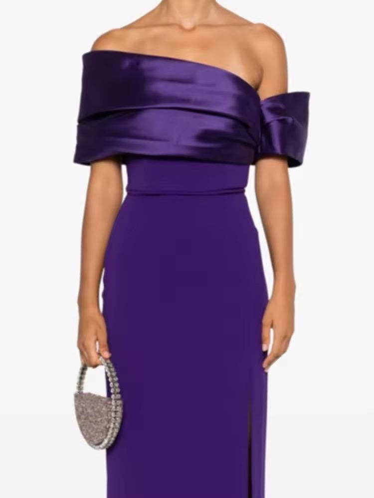 فستان نسائي طويل مكشوف الكتف