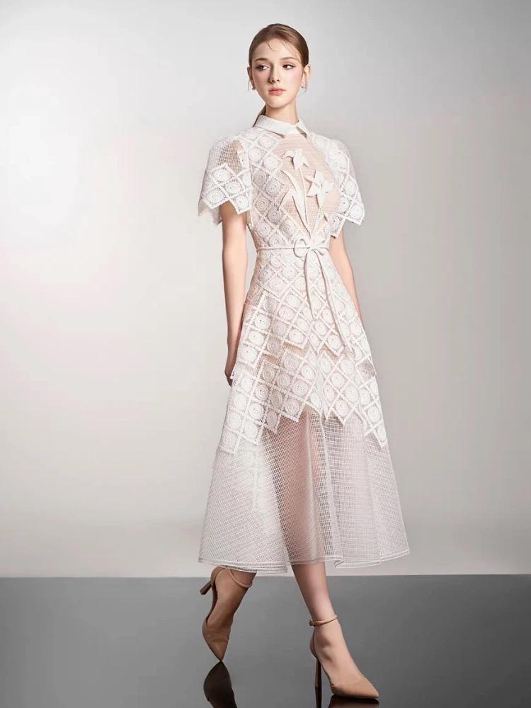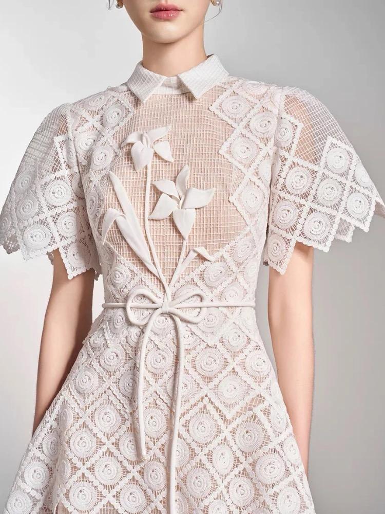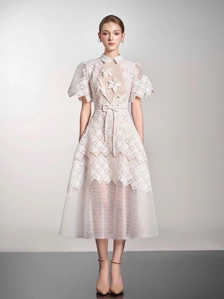 فستان نسائي من الدانتيل تطريز ثلاثي الابعاد