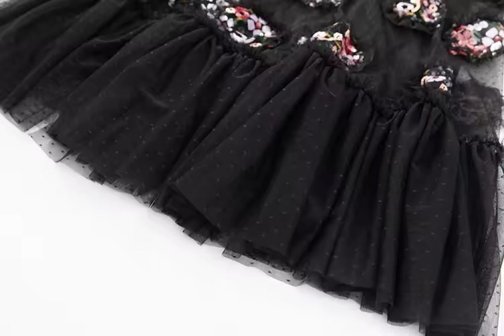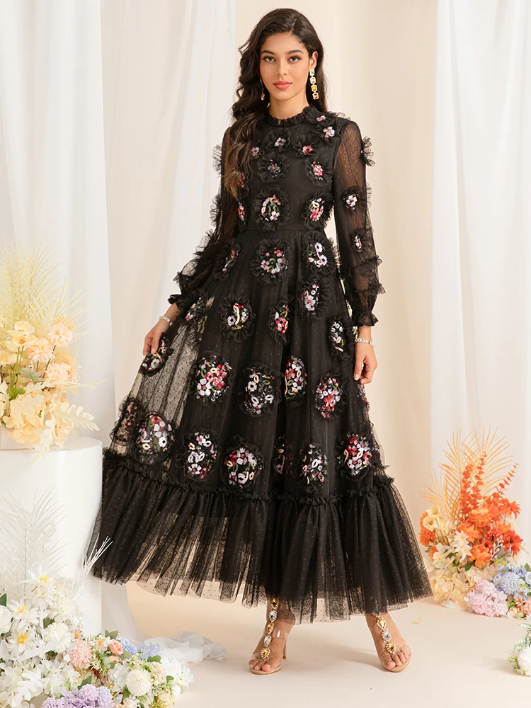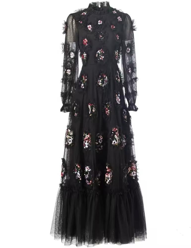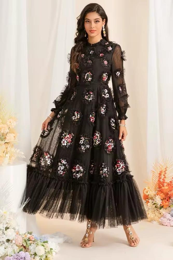 فستان طويل من التل المشغول