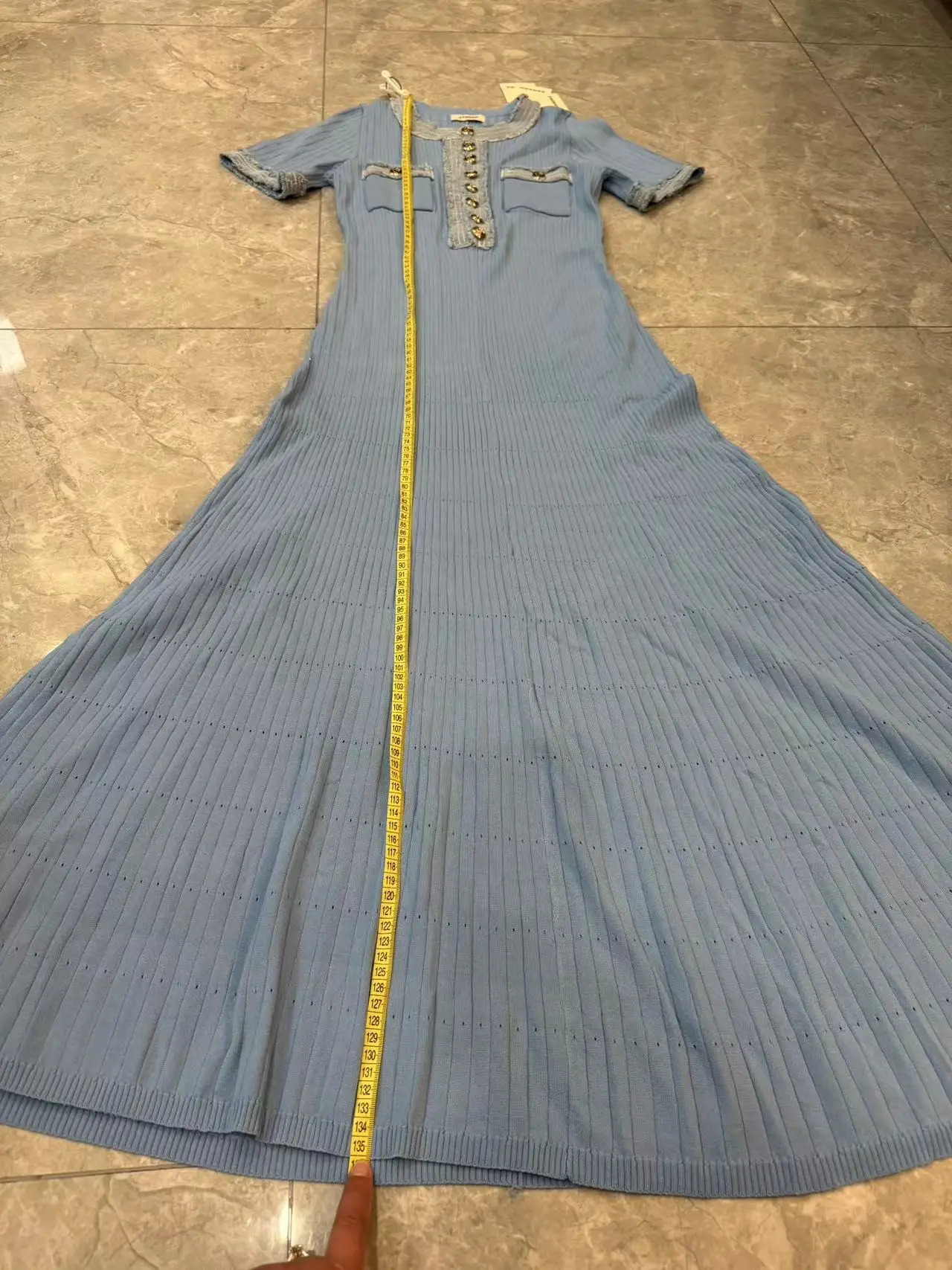 فستان مكسي محبوك مزين بالجنز مع الاطراف