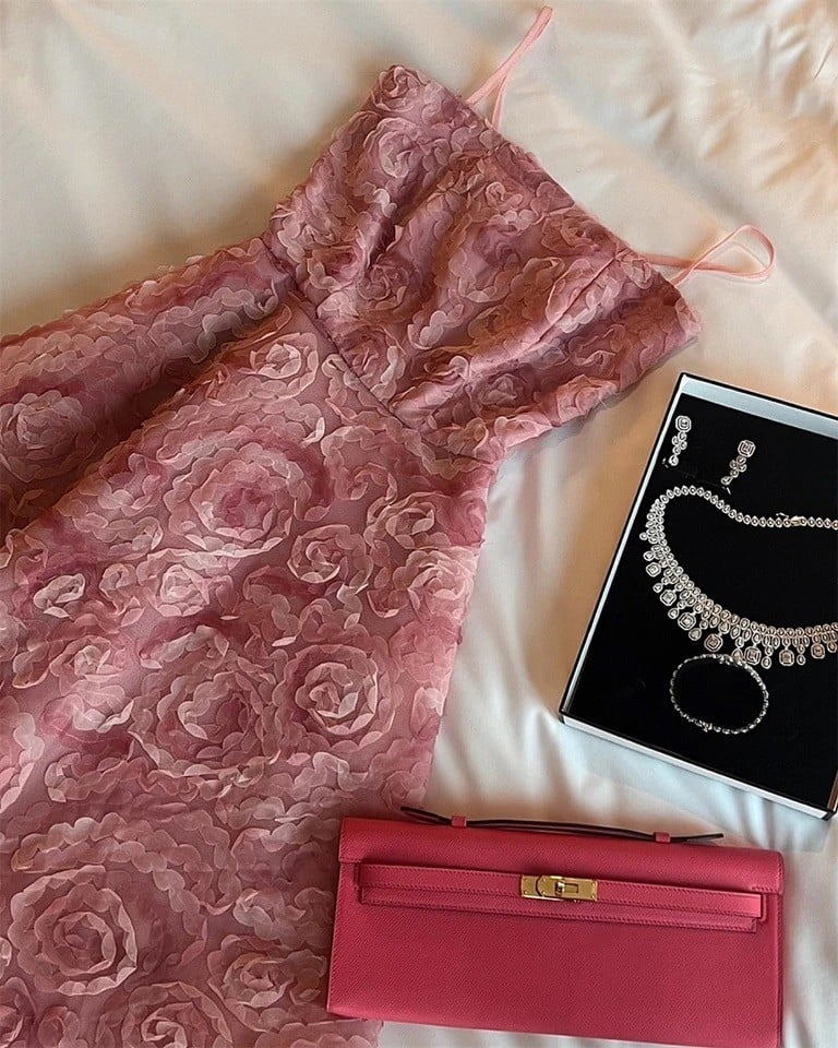 الفستان يتمتع باتساع بداية من الخصر إلى أسفل ليجسد الشكل التقليدي والكلاسيكي الفساتين النسائية القديمة