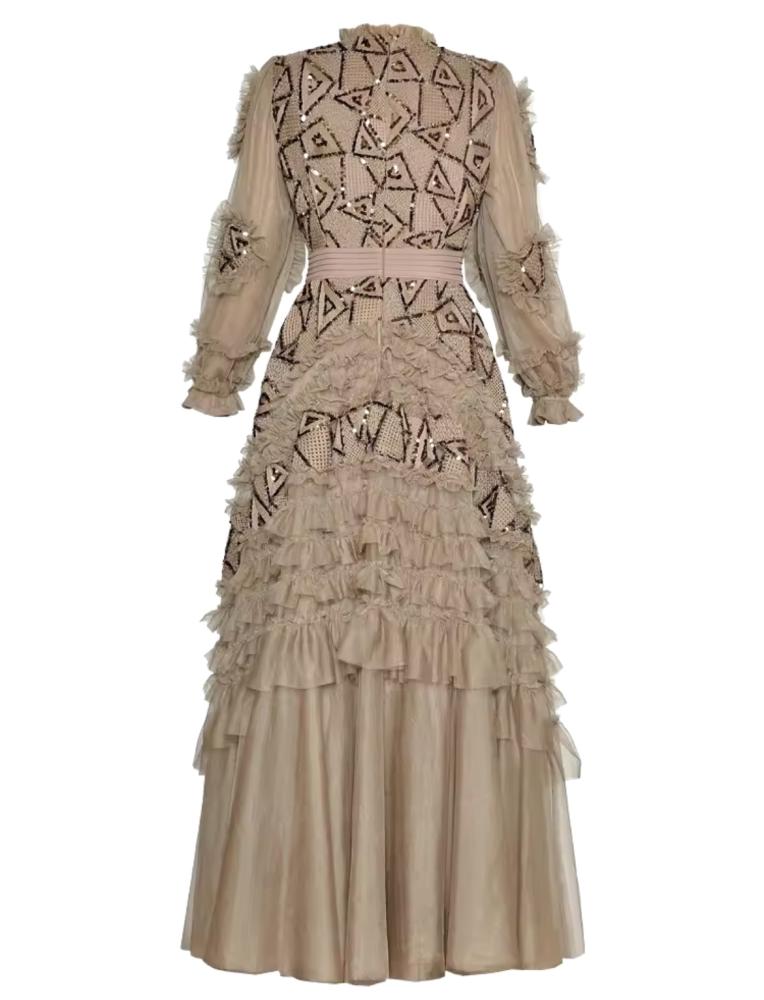 يعتبر هذا الفستان مناسبًا للمناسبات الرسمية والحفلات، حيث يمكن أن يكون خيارًا مثاليًا للنساء اللواتي يتطلعن إلى الجمع بين الأناقة والراحة في إطلالة واحدة.